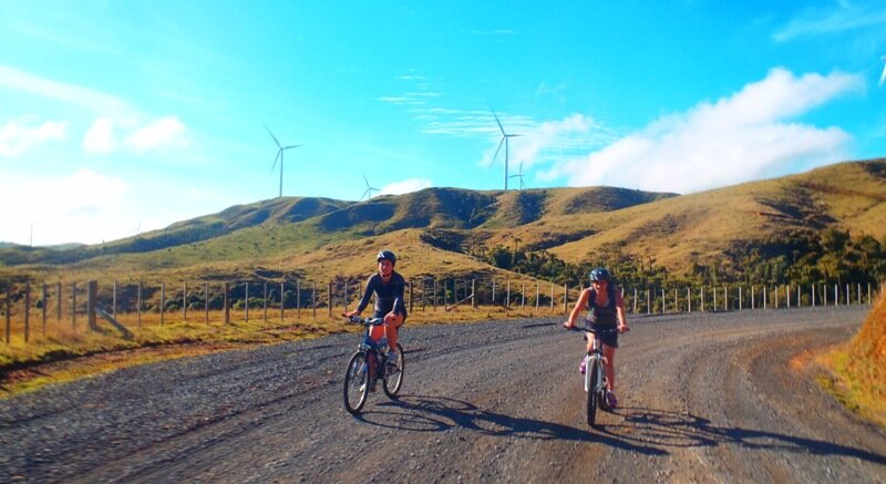 Te Uku Wind Farm Pipiwharauroa Trail takes about 2-3 hours to bike. We provide Bike hire and transport to the start and then pick you up afterwards at either Bridal Veil Falls or at the end of the track.
