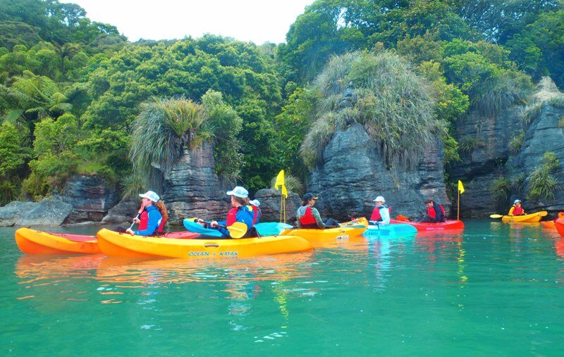Kayaking can be enjoyed by anyone wanting to explore these wonderful waterways we have to offer. We will introduce you to some local paddle spots on our guided tours and short trips throughout Raglan Harbour. We will give you the skills and knowledge to safely paddle, whether it’s just a quiet morning or a full tour, see our amazing pancake rocks or visit waterfalls. Let us help you find your joy.